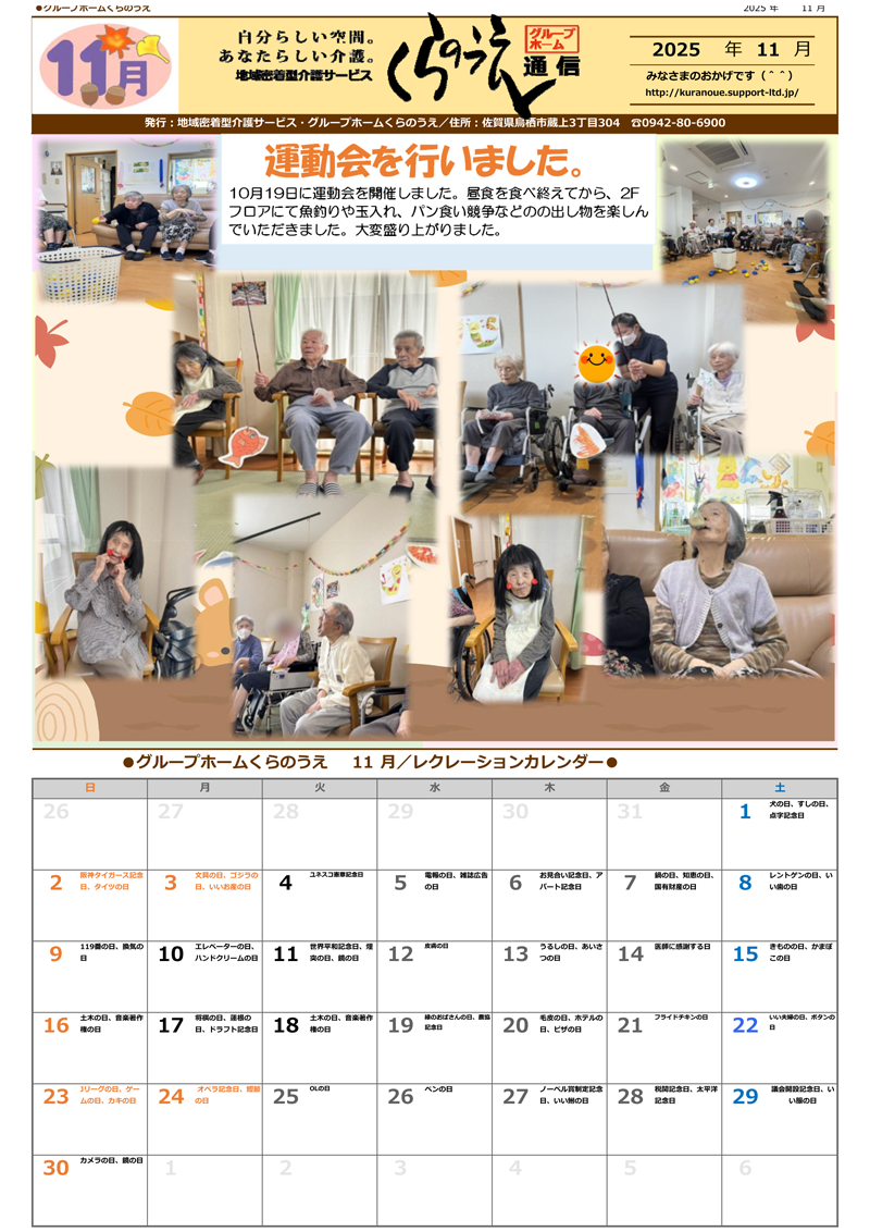 お知らせ~更新情報をこちらでお知らせします~ 一覧はこちら 2025.11.19 お知らせ 苑便り11月号を掲載しました 2025.11.18 お知らせ 敬老会を開催しました 2025.10.22 お知らせ 苑便り10月号を掲載しました
