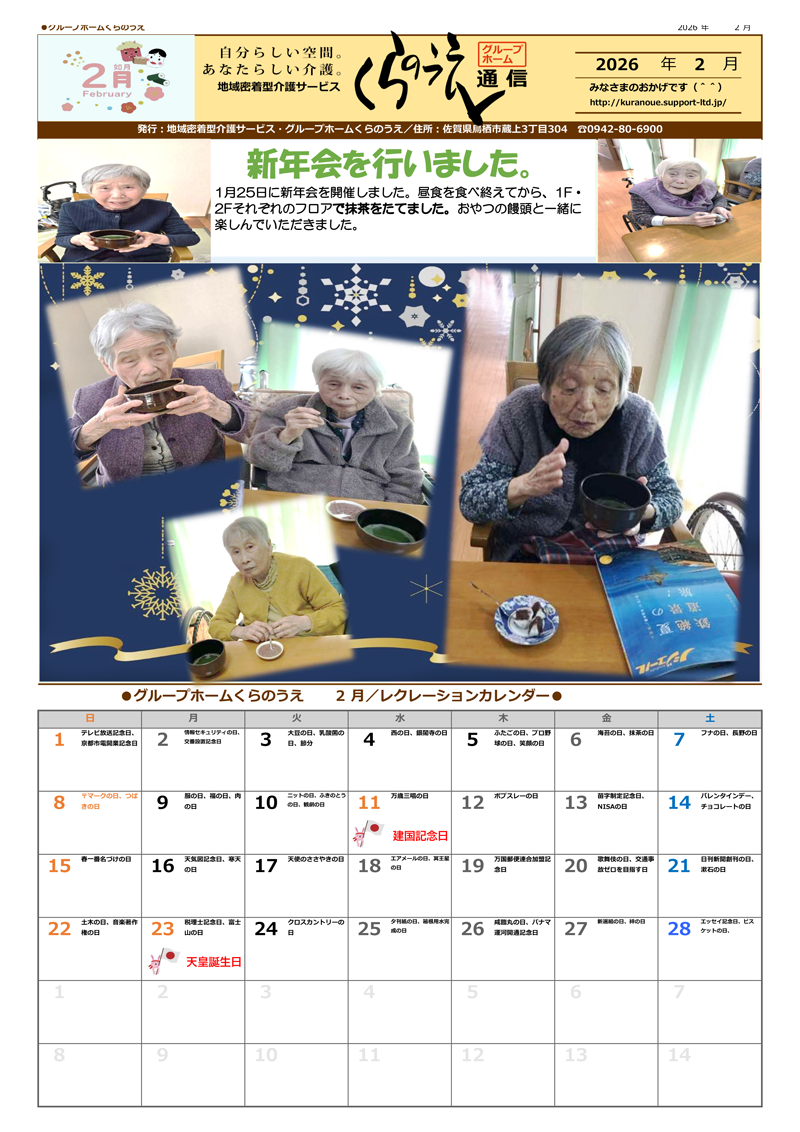 【2月】苑便りを更新しました